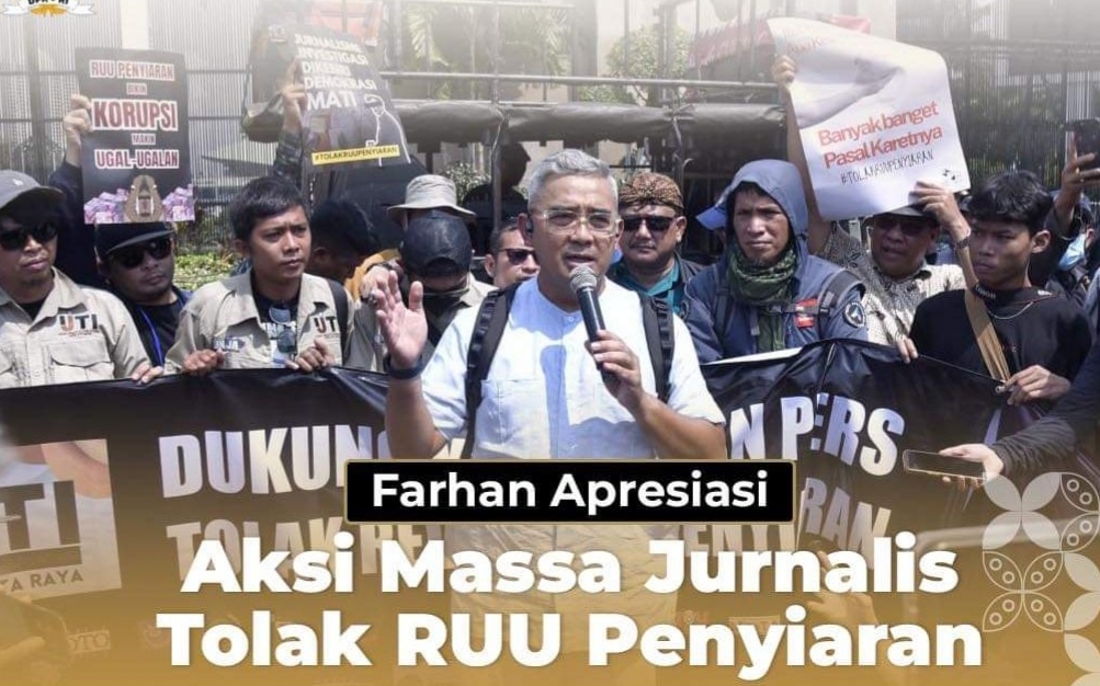 Dalam kesempatan itu, ia menilai revisi UU Penyiaran bisa jadi pintu masuk bagi aturan-aturan yang tidak sesuai dengan kebebasan pers. Oleh karena itu, Farhan bertekad bakal mengawal perkembangan pembahasan revisi UU Penyiaran itu. Adapun revisi UU Penyiaran ini sedang dibahas di Badan Legislatif (Baleg) DPR RI.