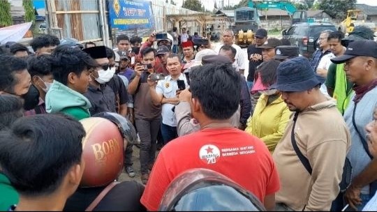 ”Rusdi, Kordinator aksi menuntut agar perusahaan menunjukan IMB atau PBG perusahaan,