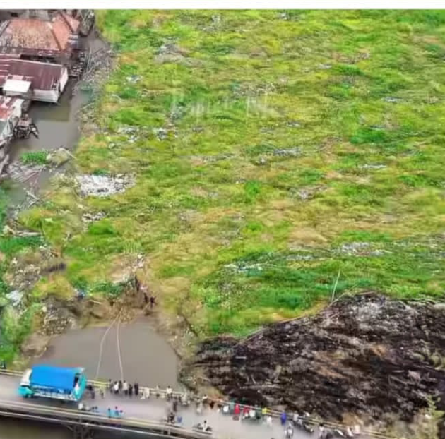 Tumpukan eceng gondok yang menyerupai daratan di sekitar jembatan penghubung Terate–Belanti menjadi perhatian warga.(15/2/2026).