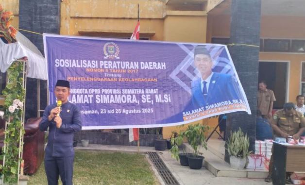 Faktanusantaraemas.com.                             Padang ( Sumbar).                                                Anggota DPRD Provinsi Sumatera Barat, Salamat Simamora, SE., M.Si, dari Komisi V, melaksanakan Sosialisasi Peraturan Daerah (Sosper) Nomor 5 Tahun 2017 tentang Penyelenggaraan Keolahragaan di halaman kantor Nagari Panti, Senin (25/8/2025).