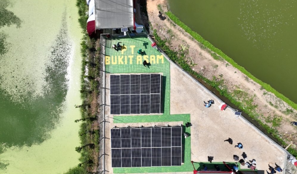 PT Bukit Asam Tbk membangun Pembangkit Listrik Tenaga Surya (PLTS) dengan kapasitas 23,4 kilowatt-peak (kWp) untuk menghidupkan pompa irigasi pertanian di Desa Lugusari, Kabupaten Pringsewu, Lampung.(8/11/2024).