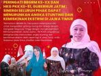 Faktanusantaraemas.com. Madiun (Jatim). Gubernur Jatim Hj.Khofifah Parawangsa ,dalam Puncak Peringatan Bulan Bakti Gotong Royong Masyarakat (BBGRM) XX & Hari Kesatuan