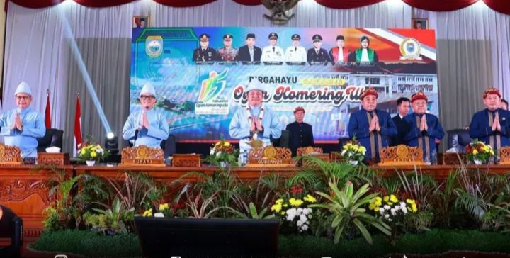 Rapat Paripurna Istimewa DPRD OKU dalam rangka Hut Ke-115 Tahun 2025, Di Pimpin langsung Ketua DPRD OKU H. Sahril Helmi, S.H, mereka didampingi Gubernur Sumsel H. Herman Deru, Bupati OKU H. Teddy Meilwansyah, Wakil Ketua DPRD H.Rudi Hartono, Sekda OKU H. Dharmawan Irianto, S.Sos, MM, Sekwan Iwan  Setiawan, S Ag,. M.SI. Acara dilaksanakan Di Gedung Kesenian Baturaja OKU. (29/7) 2025).