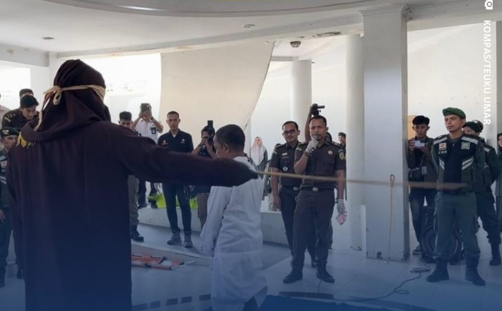 “Kemudian, algojo dari Polisi Syariat Islam atau Wilyatul Hisbah (WH), dengan menggunakan rotan mulai mencambuk terpidana sesuai dengan hitungan dan arahan dari jaksa,”tegasnya.