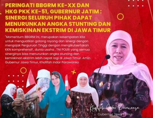 ”Selanjutnya dunia usaha , TNI POLRI yang semua sinerginya bisa menurunkan angka stunting dan kemiskinan ekstrim. lebih cepat lagi di Jawa Timur. Amin,”tandasnya.*( Trh.4m.S).