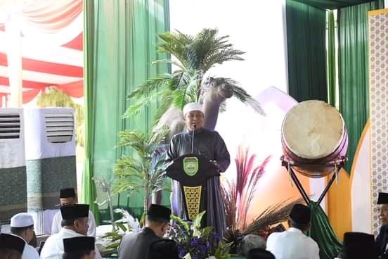 Herman Deru mengawali sambutannya sebelum Sholat Ied 1444 H di Halaman Griya Agung Palembang, Kamis (29/6/2023).