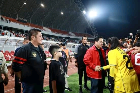 Gubernur Sumsel H. Herman Deru, mendampingi Ketua Umum Persatuan Sepakbola Seluruh Indonesia (PSSI) Erick Thohir menyaksikan pertandingan semifinal AFF U-19 Women’s Championship 2023 yang digelar di Stadion Gelora Sriwijaya Jakabaring, Kamis (13/7/2023) malam.