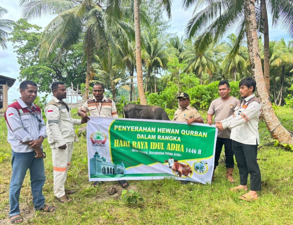 Menyambut Hari Raya Idul Adha 1446 H yang penuh berkah, PT. BARTRA menunjukkan komitmennya, dalam berbagi dan mempererat tali silaturahmi dengan masyarakat melalui penyerahan dua ekor sapi qurban kepada warga Desa Umera, kecamatan Pulau Gebe Kabupaten Halmahera Tengah.(5/6/2025).