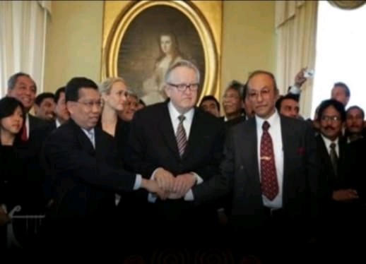 ”Martti Ahtisaari adalah Presiden Republik Finlandia dari tahun 1994 hingga 2000. Sebelumnya, ia memiliki karir cemerlang di PBB dan Kementerian Luar Negeri Finlandia,”terangnya.