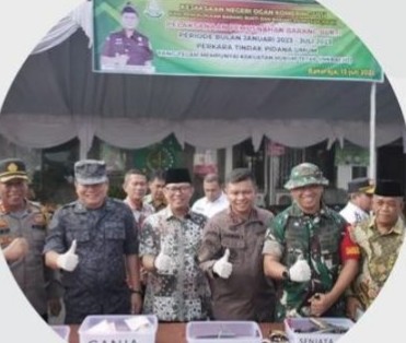 PJ. Bupati OKU H. Teddy Meilwansyah, bersama Forkopimda Kab. OKU menghadiri Pemusnahan Barang Bukti Periode Bulan Januari 2023 – Juli 2023. Perkara Tindak Pidana Umum Yang Telah Mempunyai Kekuatan Hukum Tetap (Inkracht) oleh Kejaksaan Negeri di Halaman Kantor Kejari OKU, Kamis (13/7/2023).
