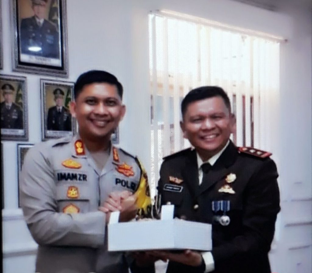 Kedatangan Kapolres Oku bersama rombongan yang membawa kue ulang tahun, disambut hangat Kepala Kejaksaan Negeri (Kajari) Baturaja Choirun Parapat, S.H., M.H., beserta seluruh staf.