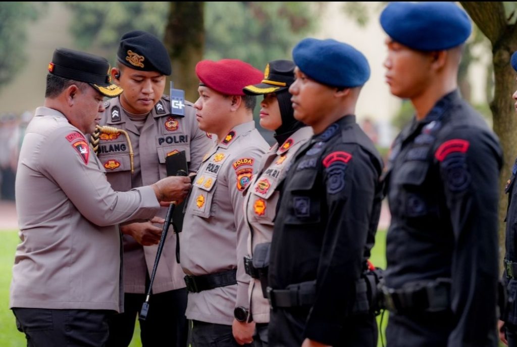 Pin Emas disematkan oleh Kapolda Sumut Irjen Whisnu Hermawan di lapangan KS. Tubun Mapolda Sumut, Senin(2/12/2024).
