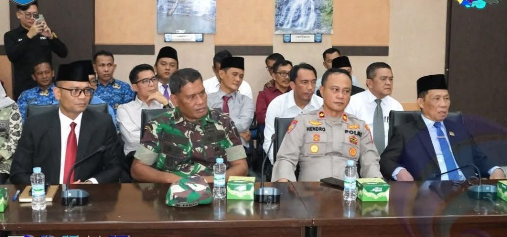 Bupati Ogan Komering Ulu Selatan, Abusama, SH., menerima kunjungan kerja dari Kepala Badan Narkotika Nasional Provinsi (BNNP) Sumatera Selatan, Brigjen Pol. Dr. Drs. Guruh Achmad Fadiyanto, M.H., di Ruang Nagara Bhakti Pemkab OKU Selatan, Jumat (2/5/2025).