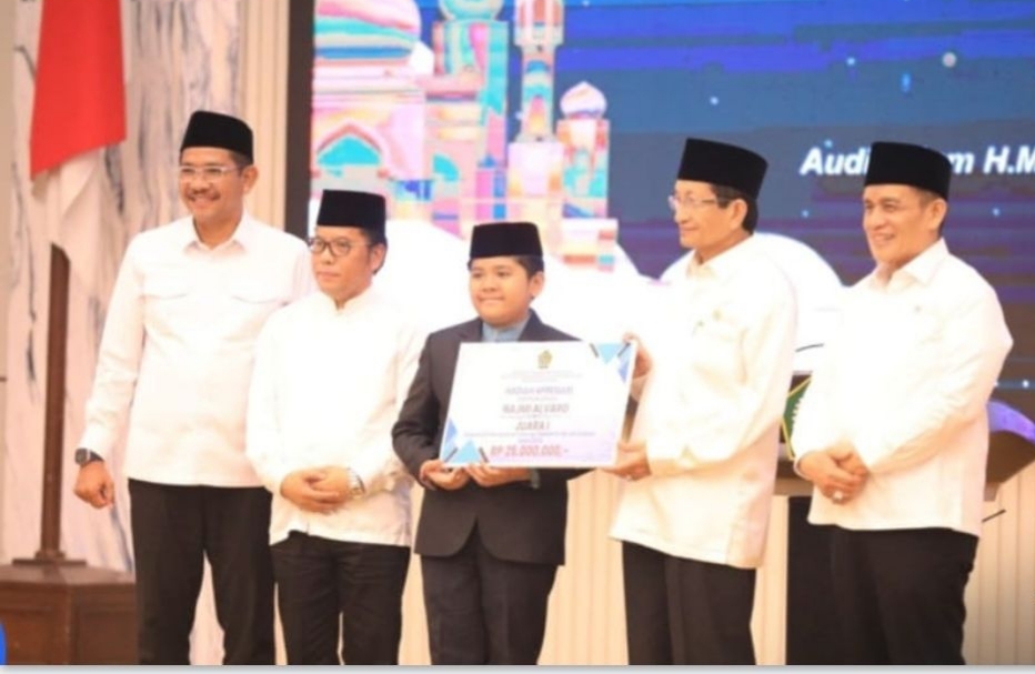 (Kemenag) Kementerian Agama (Kemenag) memberi penghargaan kepada Najmi Alvaro, qari cilik asal Barito Timur, Kalimantan Tengah yang meraih juara pertama Musabaqah Tilawatil Qur’an (MTQ) Internasional Tijan Annour 2025 di Qatar. Penghargaan senilai Rp25 juta tersebut diserahkan Menteri Agama, Nasaruddin Umar, dalam kegiatan Halalbihalal Kemenag di Jakarta, Rabu (9/4/2025).