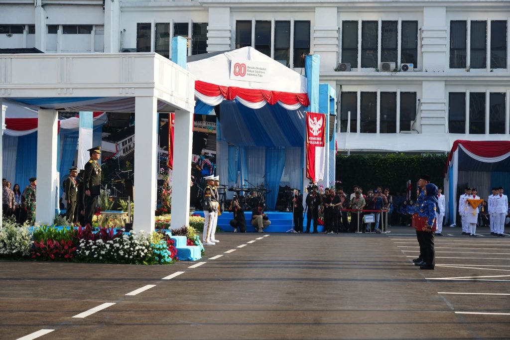 Kementerian Koordinator Bidang Politik dan Keamanan (Kemenko Polkam) Republik Indonesia, menggelar upacara peringatan Hari Ulang Tahun ke-80 Kemerdekaan Republik Indonesia yang dipimpin oleh Sesmenko Polkam, Letjen TNI (Purn) Mohammad Hasan dan diselenggarakan di halaman Kantor Kemenko Polkam, Jakarta.(17/8/2025).