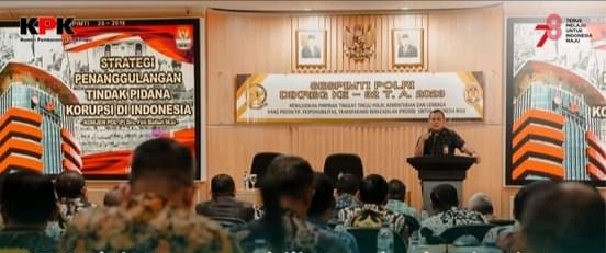 ”Lanjut Firli, tegaskan agar seluruh lembaga negara wajib menjaga integritas merujuk kepada ideologi pancasila, yang bermakna dalam. Korupsi jadi permasalahan bangsa. Korupsi ini merupakan kejahatan luar biasa, yang tidak bisa membuat kita sejahtera dan bisa gagal mewujudkan tujuan negara,”ujarnya.