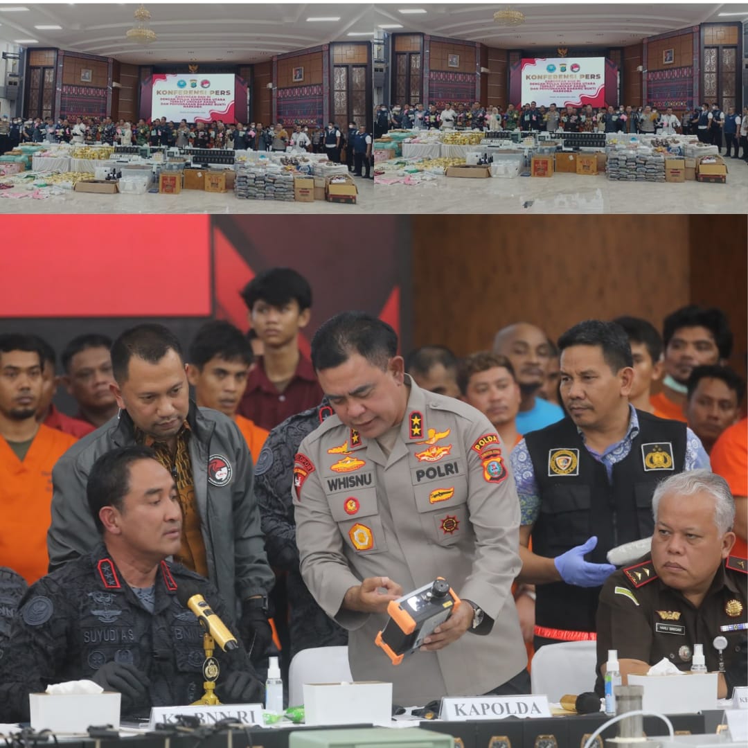 Kepala BNN RI, Komjen Pol Suyudi Aryo Seto dalam paparannya, Jumat (26/9/2025) di Aula Tri Brata Poldasu mengatakan, pengungkapan kolaboratif ini menunjukkan bukti nyata perang melawan narkotika kerjasama bersama lintas sektoral.  Sinergitas bukan sekadar slogan. “Kehadiran kami menegaskan negara hadir dengan seluruh kekuatan. Perang melawan narkotika merupakan manifestasi wujud komitmen menyelamatkan generasi bangsa,”tegasnya.