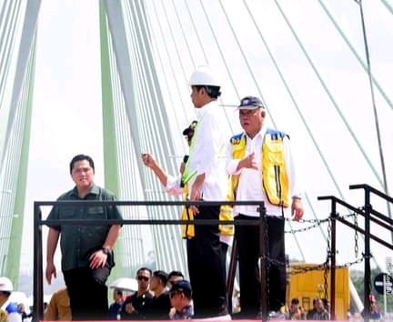 Menteri PUPR Basuki Hadimuljono mendampingi Presiden Joko Widodo ( Jokowi), meninjau pekerjaan pembangunan Jalan Tol Akses IKN-Jembatan Pulau Balang-Ruas Tol menuju Kawasan Inti Pusat Pemerintahan IKN Nusantara, dihadiri pimpinan pejabat terkait.Rabu (1/11/2023).
