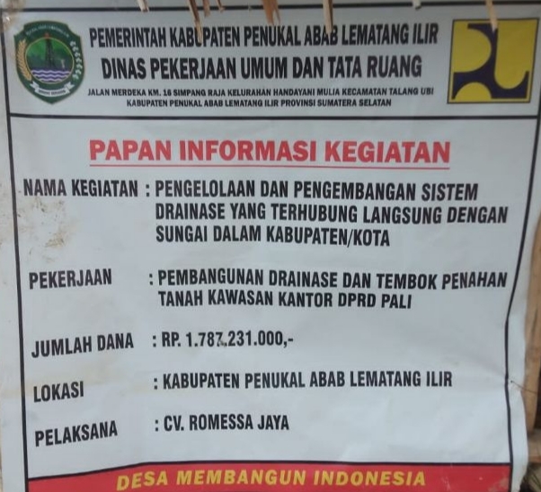 Proyek dengan Nilai Rp.1.787.231.000, (Satu Milyar Tujuh Ratus Delapan Puluh Juta Dua Ratus Tiga Puluh Satu Ribu) yang dikerjakan oleh CV. ROMESSA JAYA tersebut diduga dikerjakan tidak sesuai dengan aturan yang berlaku.