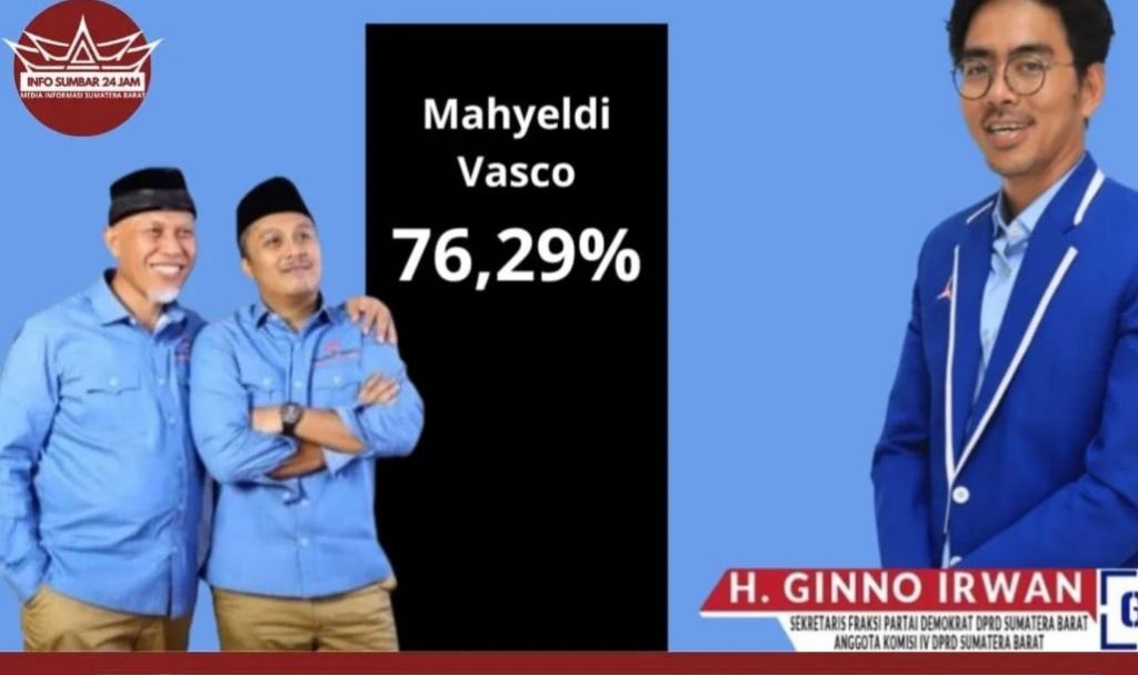 Melihat hasil tersebut H.Ginno Irwan anggota DPRD Provinsi Sumbar yang juga kader Partai Demokrat mengucapkan selamat atas kemenangan pasangan yang di dukung oleh Partai Demokrat, PKS dan Partai Gerindra. “Alhamdulillah, tadi saya sudah menghubungi Buya Mahyeldi dan Bung Vasco dan mengucapkan selamat kepada beliau berdua,”ucap HGI sapaan akrab H.Ginno Irwan