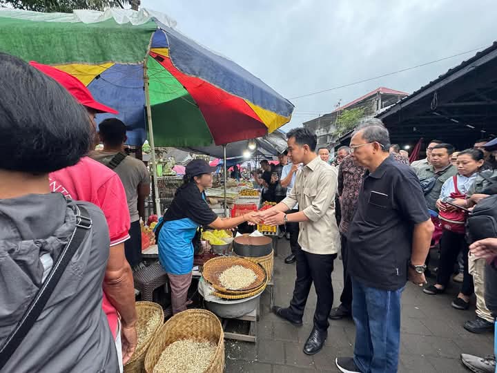 Wakil Presiden (Wapres) Gibran Rakabuming meninjau Pasar Dauh Pala di Desa Dauh Peken, Kecamatan Tabanan, Kabupaten Tabanan, Bali Sabtu pagi (5/7/2025).