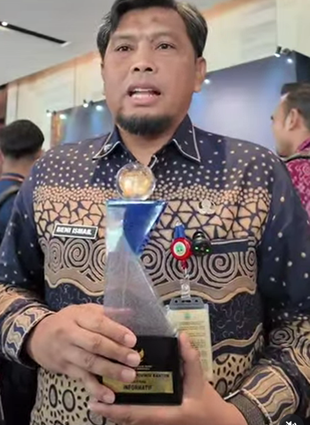Penghargaan ini diterima Gubernur Banten yang diwakili oleh Kepala Dinas Komunikasi, Informatika, Statistik dan Persandian Provinsi Banten, Beni Ismail di Jakarta, Senin (15/12/2025). “Tantangan ke depannya adalah mempertahankan dan terus menyajikan informasi seluas-luasnya kepada masyarakat menuju Banten Maju, Adil Merata, Bebas Korupsi,”pungkasnya.(*Tr.4_/Dk*).