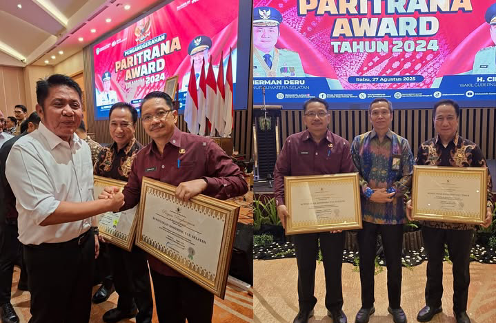 Pemerintah Provinsi Sumatera Selatan melalui Gubernur H. Herman Deru, memberikan apresiasi khusus kepada pemerintah kabupaten OKU Timur dan OKU Selatan dalam ajang Penghargaan Paritrana Award Tahun 2024, atas komitmen mereka dalam memberikan perlindungan jaminan sosial ketenagakerjaan kepada ribuan pekerja rentan di daerahnya masing-masing.(27/8/2025).