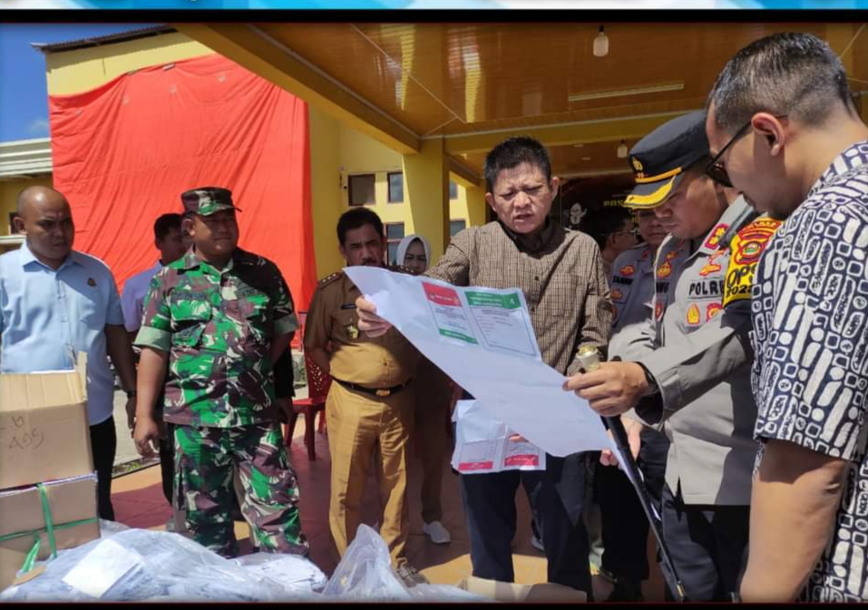 Bupati OKU Timur Ir. H. Lanosin, M.T. hadiri Pemusnahan Surat Suara Pemilu yang rusak, cacat dan berlebih di Pos Keamanan Gudang Logistik Pemilu Martapura dihadiri pimpinan pejabat  prokopimda terkait.Selasa (13/2/2024).