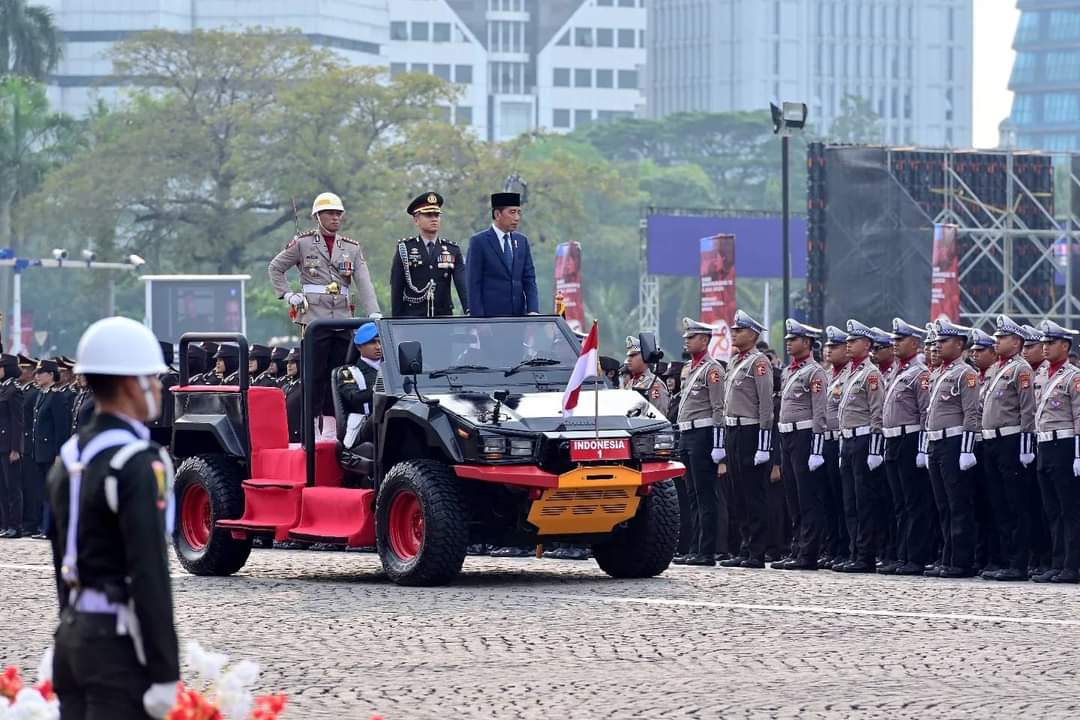 Presiden RI H.Joko Widodo (Jokowi). Hadiri Upacara peringatan Hari Bhayangkara ke-78 menandai dedikasi Polri, dalam menjaga stabilitas keamanan dan mendukung agenda pembangunan nasional dihadiri Kapolri dan pimpinan tinggi pejabat terkait .(1/7/2024).