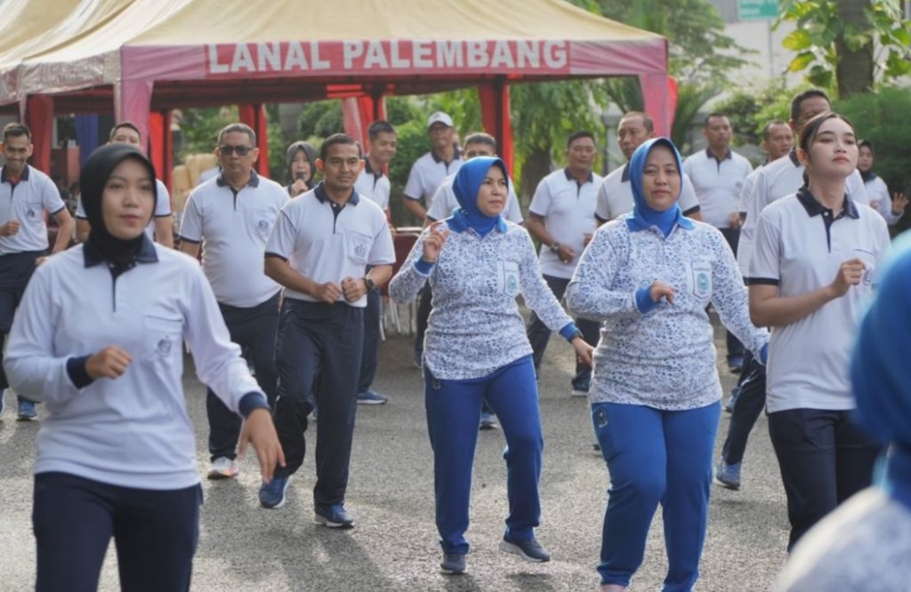 “Kegiatan diawali dengan olahraga bersama yang dihadiri langsung oleh Komandan Lanal (Danlanal) Palembang, Kolonel Laut (P) Faisal, M.Tr.Hanla., M.M., CRMP. Serta didampingi Ketua Jalasenastri Cabang 5 Korcab III DJA I, Ny. Rina Faisal dan disambut antusias oleh seluruh personel Lanal Palembang,”katanya.