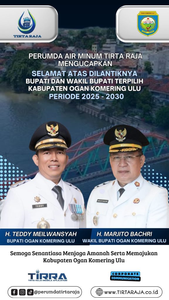 Perumda Air Minum Tirta Raja Kab.OKU Mengucapkan Selamat Dan Sukses Atas Dilantiknya Bupati OKU H.Teddy Meilwansyah – Wabup OKU H.Marjito Bachri