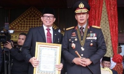 Penghargaan yang diberikan atas kontribusi terhadap Polri ini diserahkan secara langsung oleh Kapolda Sumsel Irjen Pol A. Rachmad Wibowo bersama Gubernur Sumsel H Herman Deru kepada Pj Bupati OKU H Teddy Meilwansyah, di lapangan Griya AGung Jalan Demang Lebar Daun Palembang.