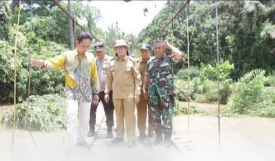 PJ. Bupati OKU H. Teddy Meilwansyah, bersama OPD terkait dan unsur Muspika, meninjau jembatan gantung desa Rantau Kumpai Kecamatan Sosoh Buay Rayap yang terkena luapan air sungai.