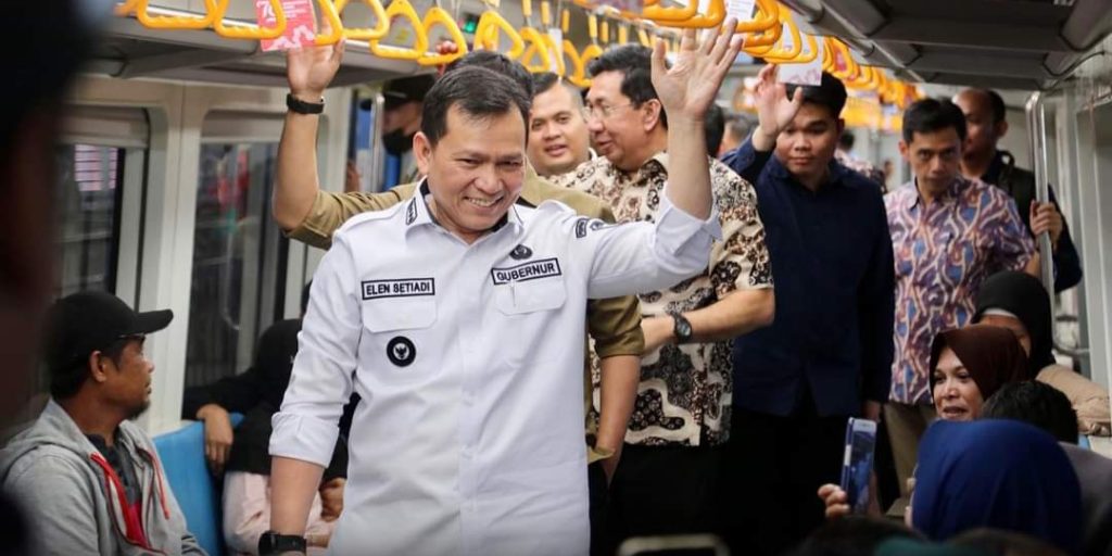 Pj Gubernur Sumsel Elen Setiadi, SH. M.S.E mencoba transportasi modern Light Rail Transit (LRT) Palembang yang merupakan LRT pertama di Indonesia, Kamis (15/8/2024) siang.