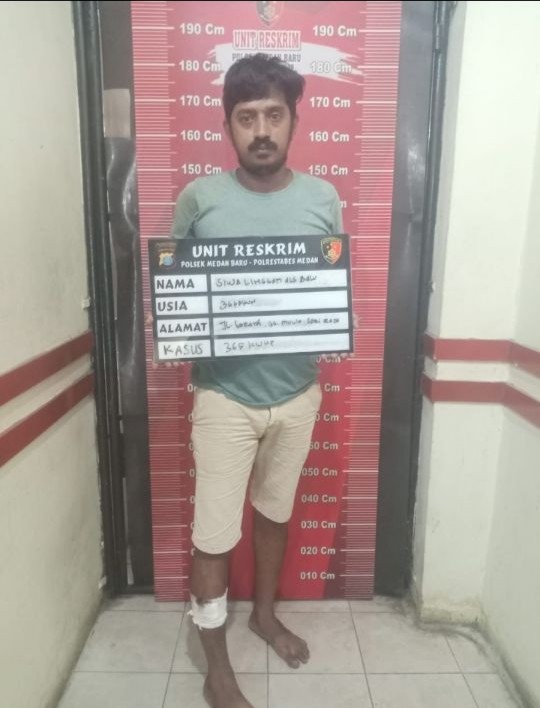 “Atas kejadian itu korban membuat laporan ke Polsek Medan Baru, dan selanjutnya laporan korban ditindak lanjuti personel Unit Reskrim Polsek Medan Baru untuk melakukan penyelidikan, serta mengamankan pelaku yang sedang bersembunyi di Jalan Karya Lestari Gg Buntu kel. Polonia Kec. Medan Polonia,”terangnya.