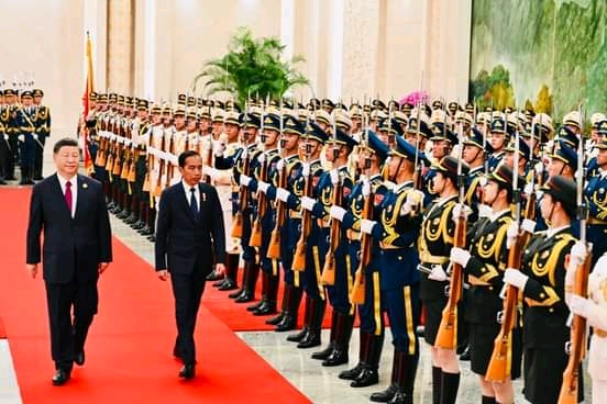 Presiden RI H.Joko Widodo (Jokowi), didampingi Ibu Negara Hj.Iriana Jokowi. Menggelar pertemuan bilateral dengan Presiden RRT Xi Jinping di Great Hall of the People, Beijing. Pertemuan digelar seusai penyambutan resmi yang khidmat dari Yang Mulia Presiden Xi Jinping. Terima kasih.(17/10/2023).