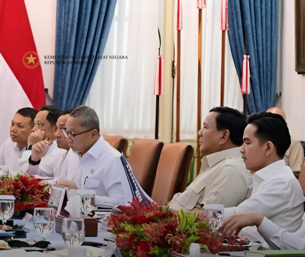 Presiden Prabowo Subianto memimpin rapat terbatas bersama sejumlah jajaran Menteri Kabinet Merah Putih di Istana Merdeka, Jakarta, pada Kamis (8/5/2025).