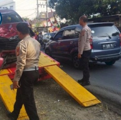 Baturaja OKU ( Sumsel).Satuan Lalu Lintas Polres Oku melaksanakan evakuasi kendaraan yang mengalami kecelakaan di jalan A Yani Lintas Sumatera Kelurahan Kemelak Bindung Langit, Kecamatan Baturaja Timur Kab. Oku. Selasa (8/8/2023) sore.