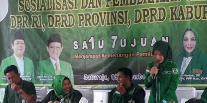 “Menurut Ketua DPC Kab.OKU, PPP menargetkan 4 kursi setiap dapil satu kursi dari ke IV dapil. Bahkan dengan penuh semangat harus meraih Satu Fraksi,”kata Umi Hartati.