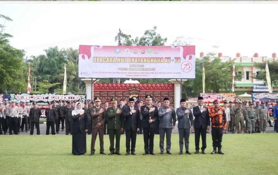 Pj. Bupati OKU H. Teddy Meilwansyah menghadiri upacara peringatan HUT Bhayangkara Ke-78 Tahun 2024, bertempat di Halaman Mapolres OKU, Senin (1/7/2024).