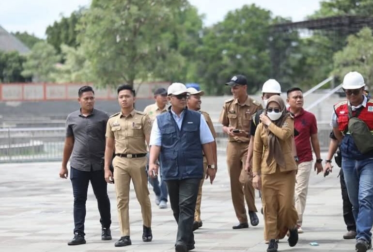 Dalam peninjauan yang didampingi Kepala Dinas Perumahan, Kawasan Pemukiman Pertanahan dan Cipta Karya Lamteng, Veni Libriyanto mengunjungi sejumlah lokasi. Diantaranya Tugu Canang, Tugu Pepadun dan Tugu Kopiah Emas.