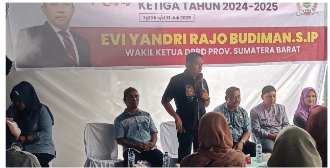 Faktanusantaraemas.com.                              Padang (Sumbar).                                                    Kegiatan reses perorangan masa sidang ketiga tahun 2024 – 2025 digelar Wakil Ketua DPRD Provinsi Sumbar Evi Yandri Rajo Budiman di RT 02 RW 01 Kelurahan Padang Besi Kecamatan Lubuk Kilangan Kota Padang, pada Jumat (25/7/2025).