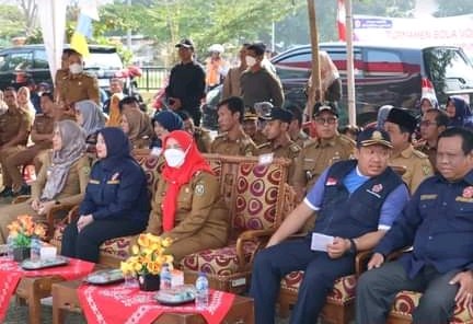 Walikota Bandar Lampung, Hj. Eva Dwiana Menghadiri Tournament Volleyball dan Badminton Dalam rangka memeriahkan perayaan Hari Ulang Tahun (HUT) Kemerdekaan Republik Indonesia yang ke-78, Senin (14/8/2023).